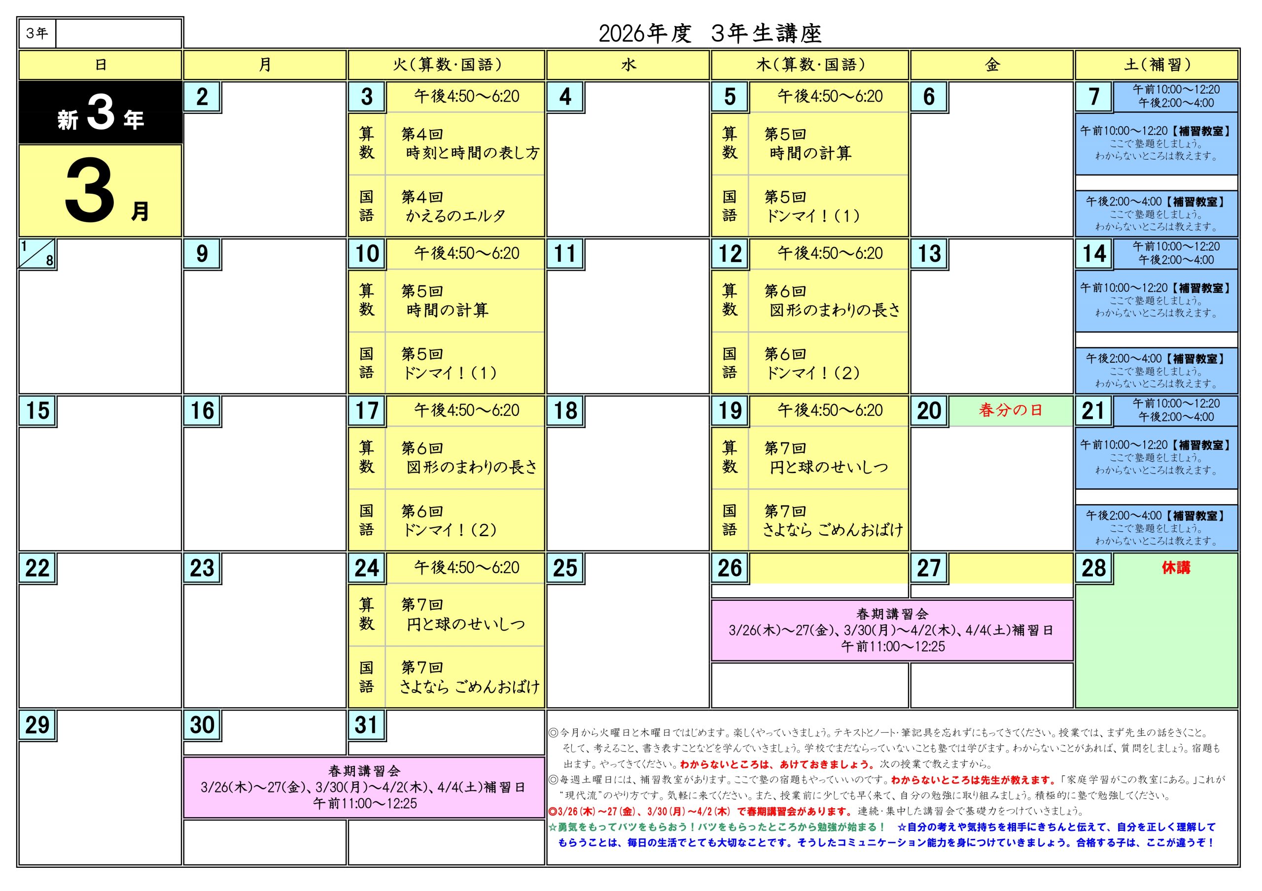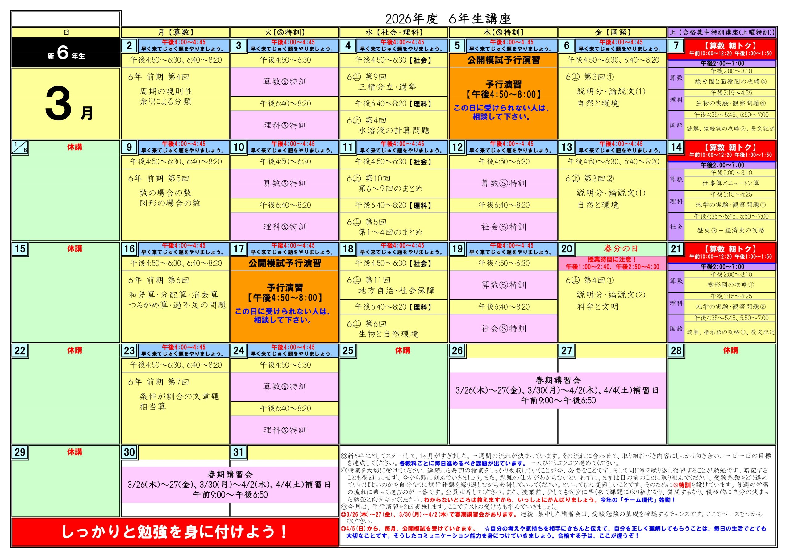 今月のカリキュラムカレンダー新6年生3月2月6年生1月冬期講習12月11月10月9月夏期 理社難関特講、理社特講夏期講習7月6月5月4月春期講習3月2月補習教室(火・木・土)新5年生3月2月5年生1月冬期講習12月11月10月9月夏期講習7月6月5月4月春期講習3月2月新4年生3月2月4年生1月冬期講習12月11月10月9月夏期講習7月6月5月4月春期講習3月2月新3年生3月2月3年生1月冬期講習12月11月10月9月夏期講習7月6月5月4月3月2月◆文京区の塾【難関中学受験】現代教育学院 生徒募集中!