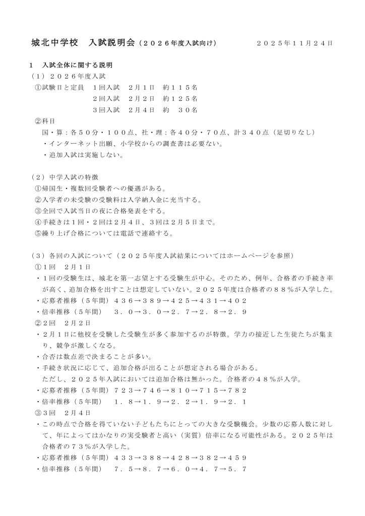 【城北中学】教育関係者説明会レポート 2026年度入試情報(2025/11/30配信) 2025年11月30日 現代教育学院 中学入試情報 0 城北中学ホームページhttps://www.johoku.ac.jp/◆文京区の塾【難関中学受験】現代教育学院 生徒募集中!2025年度入試結果2026年度入試情報受験対策受験相談最新情報