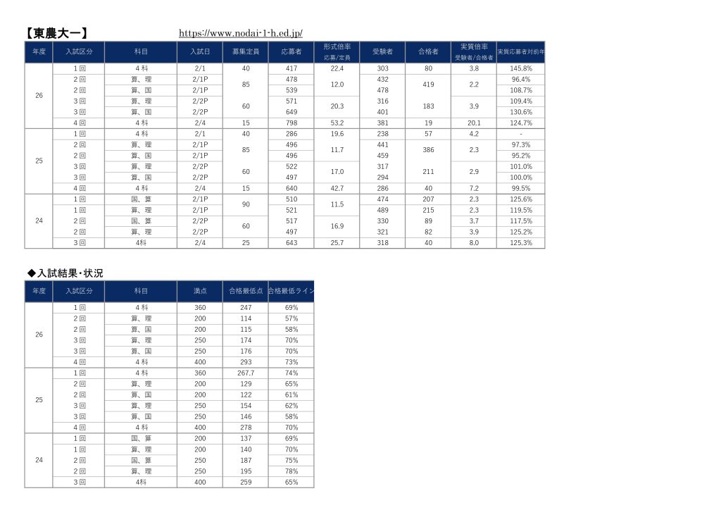 【東農大一】2026年度 入試結果(実質倍率、合格最低ライン、合格最低点等)(2026/03/21配信) 2026年3月21日 現代教育学院 中学入試情報 0 東京農大一中ホームぺージhttps://www.nodai-1-h.ed.jp/◆文京区の塾【難関中学受験】現代教育学院 生徒募集中!2026年度入試結果受験対策受験相談最新情報